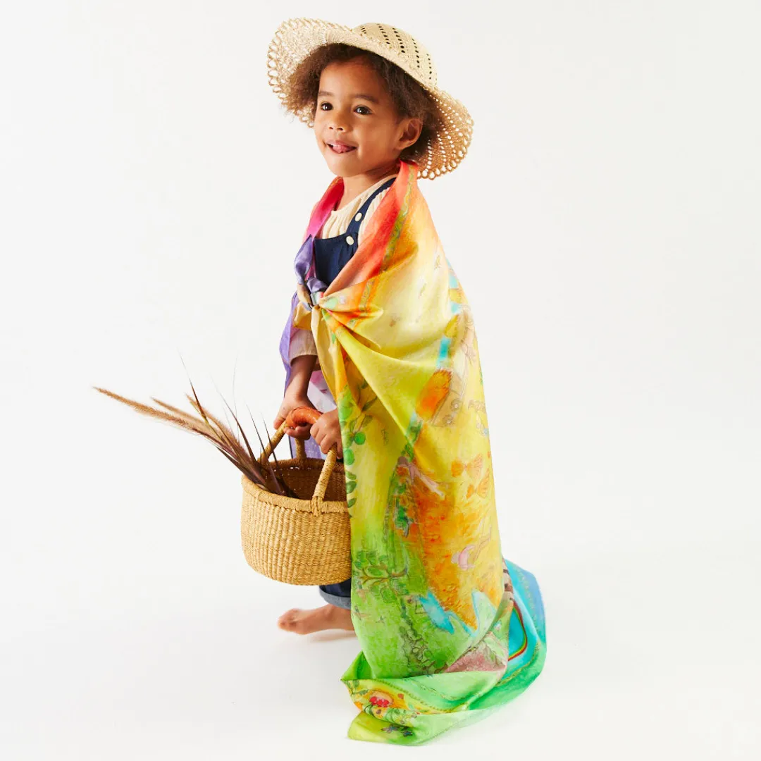 This limited edition celebration Playsilk comes in three sizes – Mini for small world play, Playsilks to build a farm with tables and chairs, and Large (New size!) for hanging on classroom and playroom walls and building play.