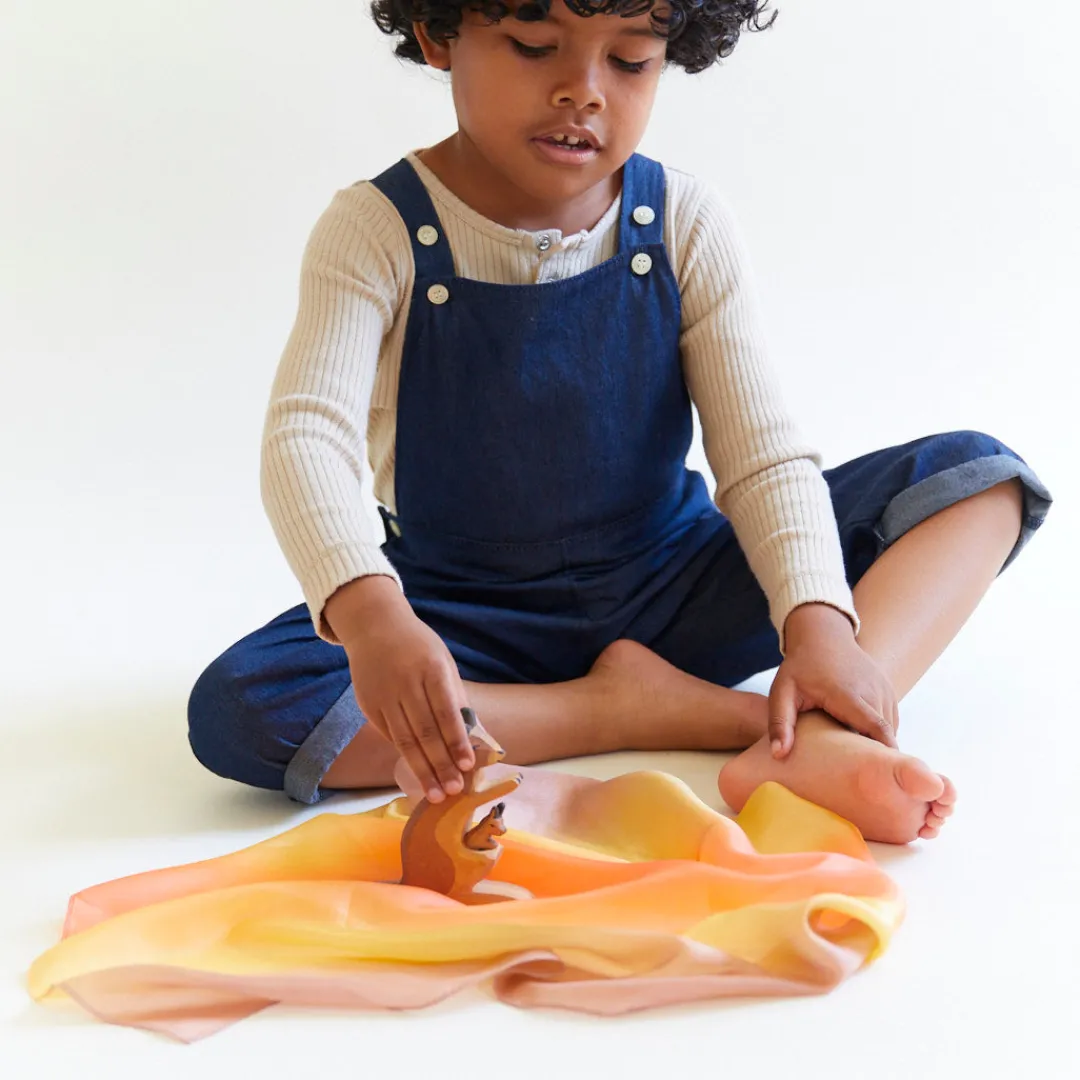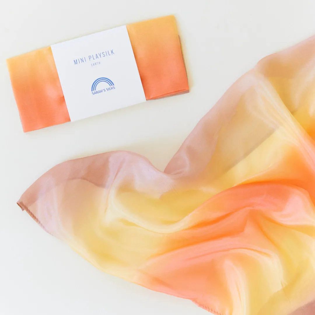 Mini Earth Playsilks are 21 x 21-inches featuring beautifully blended color harmonies inspired by nature’s beauty. Made from lightweight, 100% pure mulberry silk.