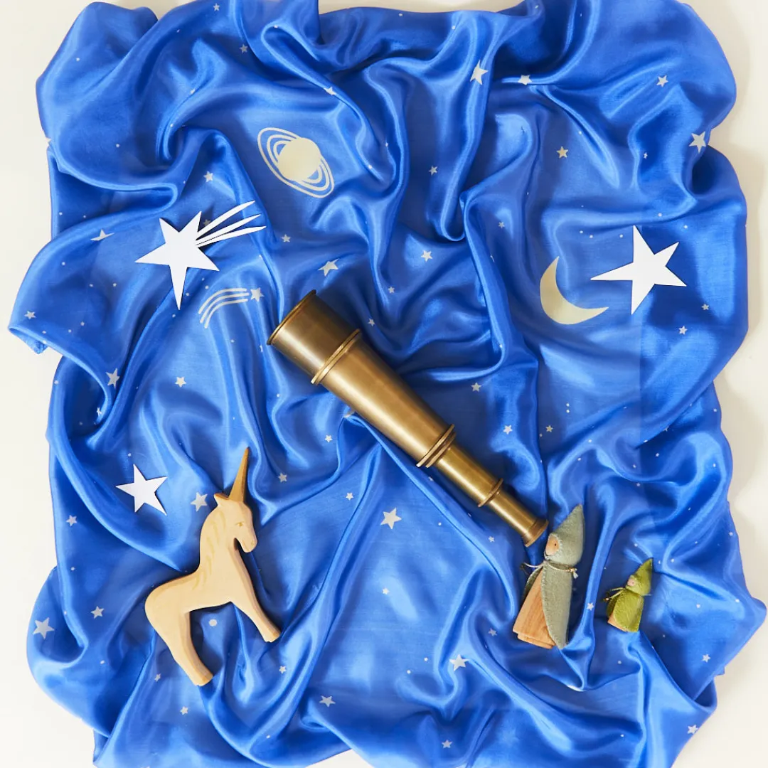 Star Playsilks are silkscreened by hand on 35 x 35-inch squares made from gorgeous, lightweight (5 momme) 100% pure mulberry silk.