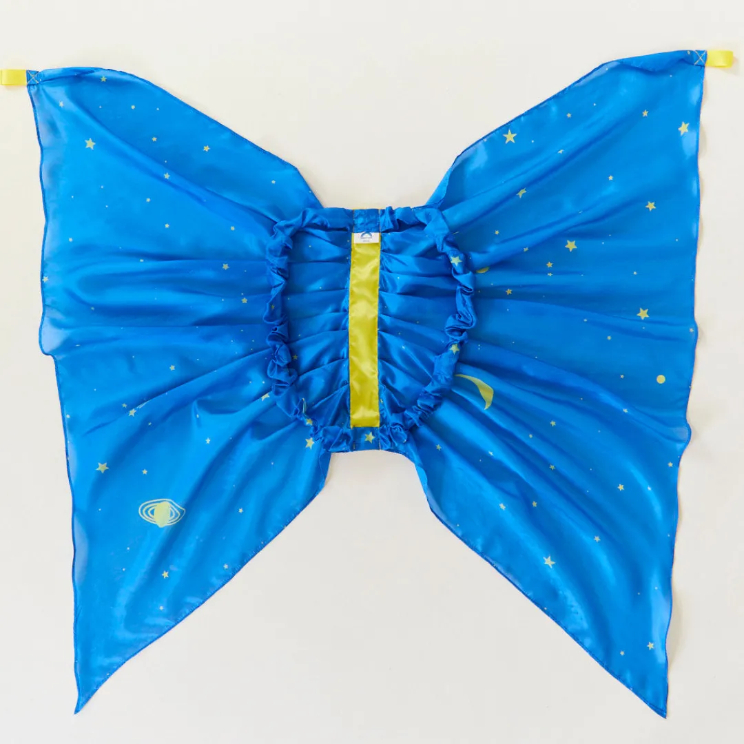 Comfortable and versatile, our silk Wings have been a staple in dress-up boxes for over 25 years. Elastic loops make our Wings easy for children to slip on and off all by themselves, with enough stretch to fit comfortably over clothing for imaginative dress-up styling.