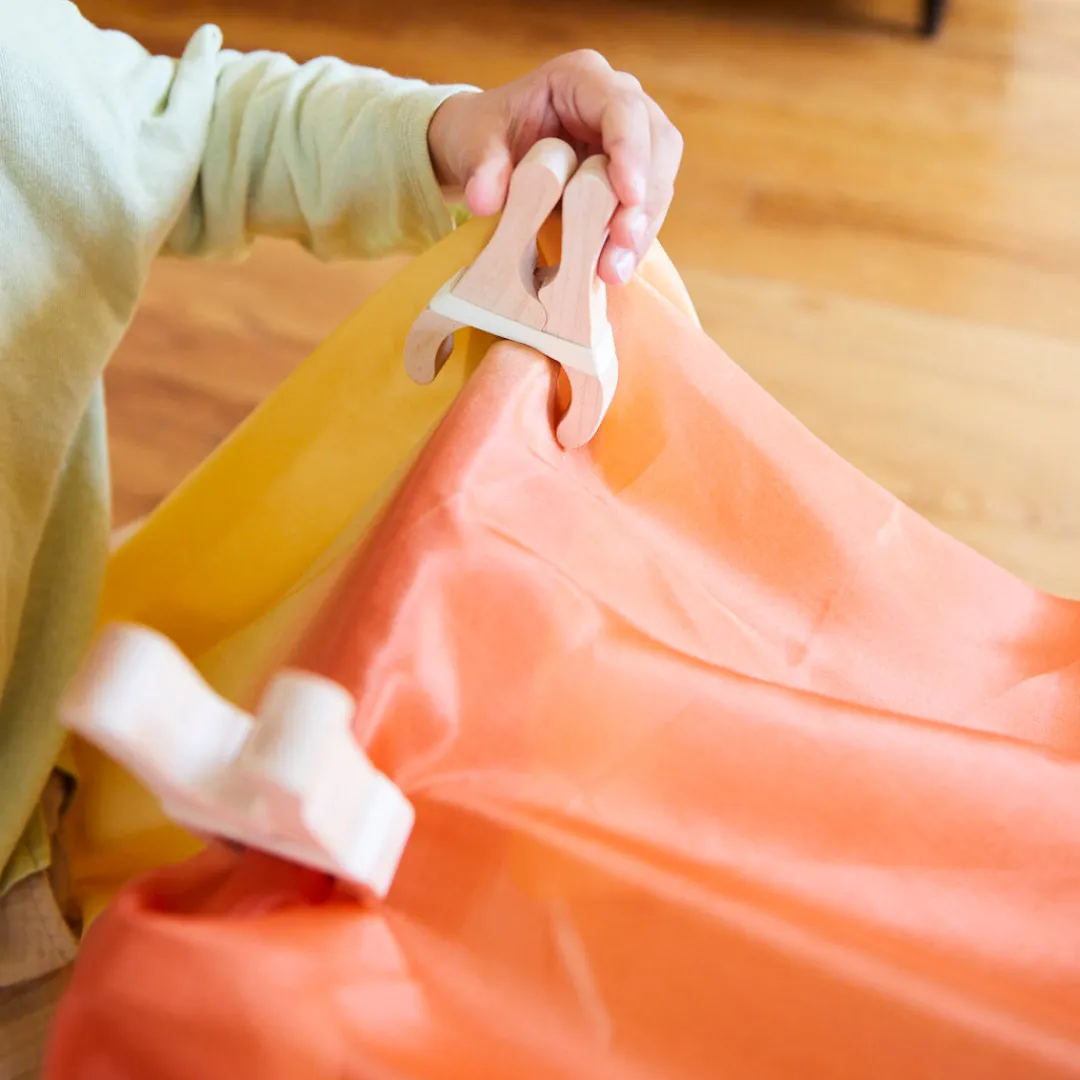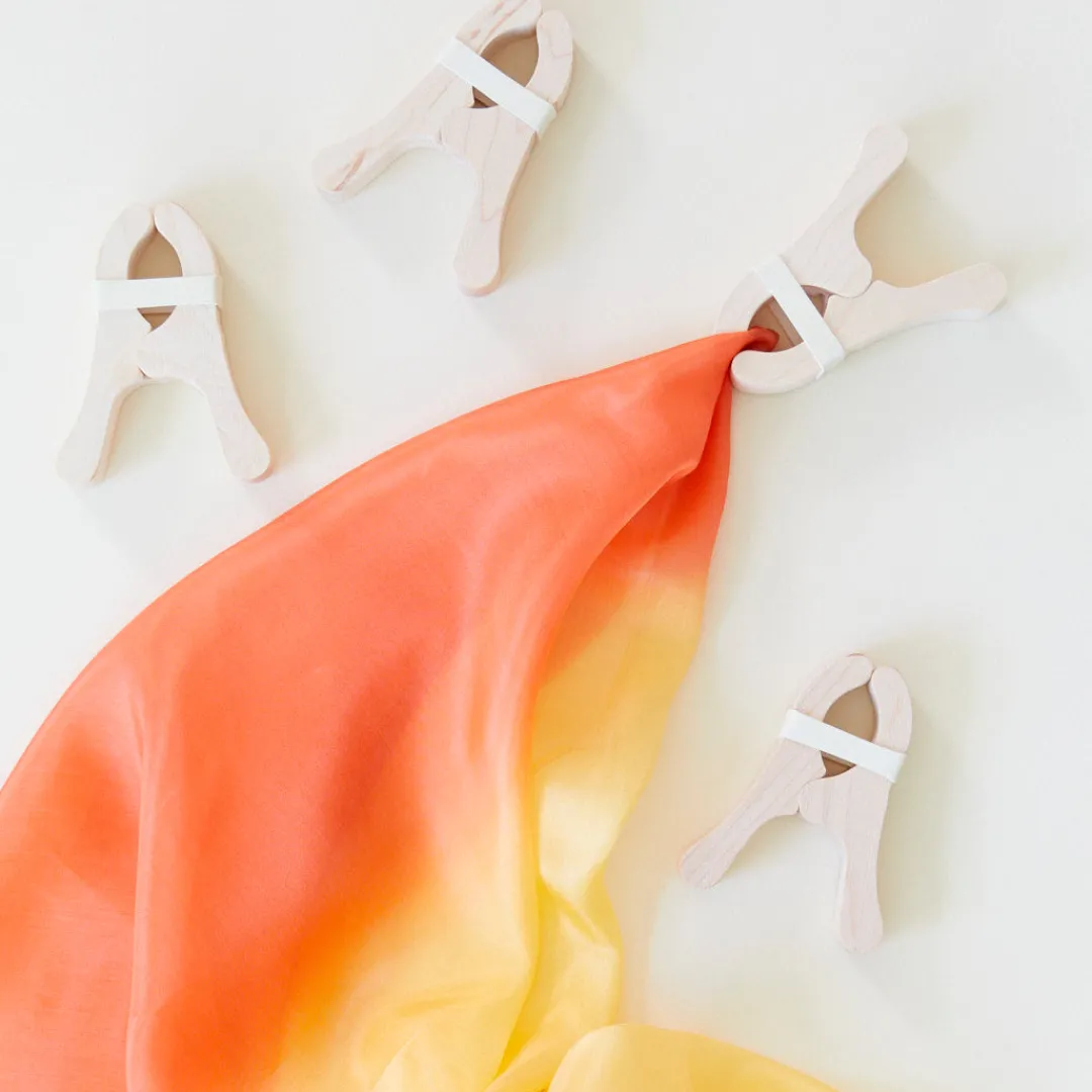 Our Fort Kits make fort build fun and easy! Desert Fort kits include a Giant Desert Playsilk and four Playclips. Give your child the gift of creating their own playspace with our Fort Kits – they work wonderfully well simply using furniture in your home, a favorite tree outdoors, or you may even prefer to use our Waldorf Playstand for maximum for building fun!