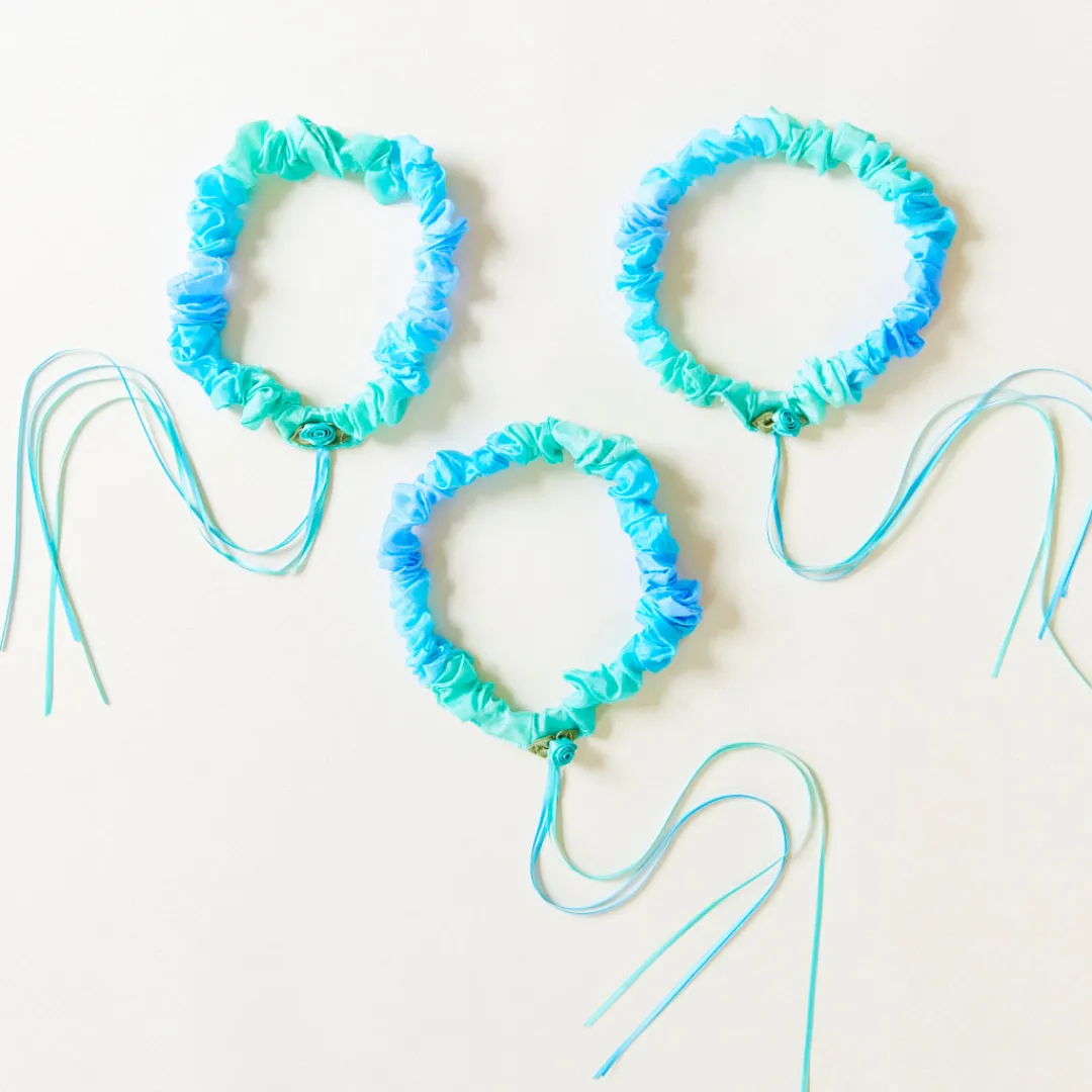 Garlands feature a stretchy elastic band (18 – 28-inch diameter), wrapped in 100% pure mulberry silk. Fits comfortably on even the most sensitive little ones.