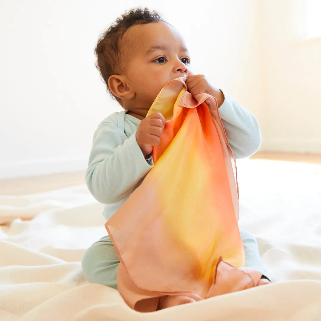 Mini Earth Playsilks are 21 x 21-inches featuring beautifully blended color harmonies inspired by nature’s beauty. Made from lightweight, 100% pure mulberry silk.