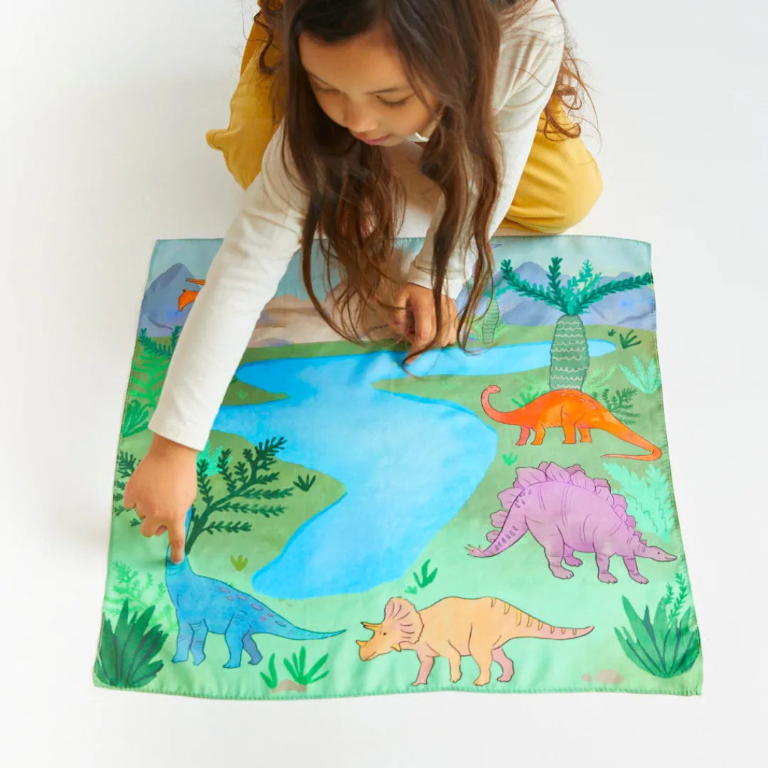 Featuring a limited edition Mini Playsilk, depicting an engaging dinosaur scene – perfect for small world, imaginative play. Little ones will enjoy recognizing their favorite dinosaurs!