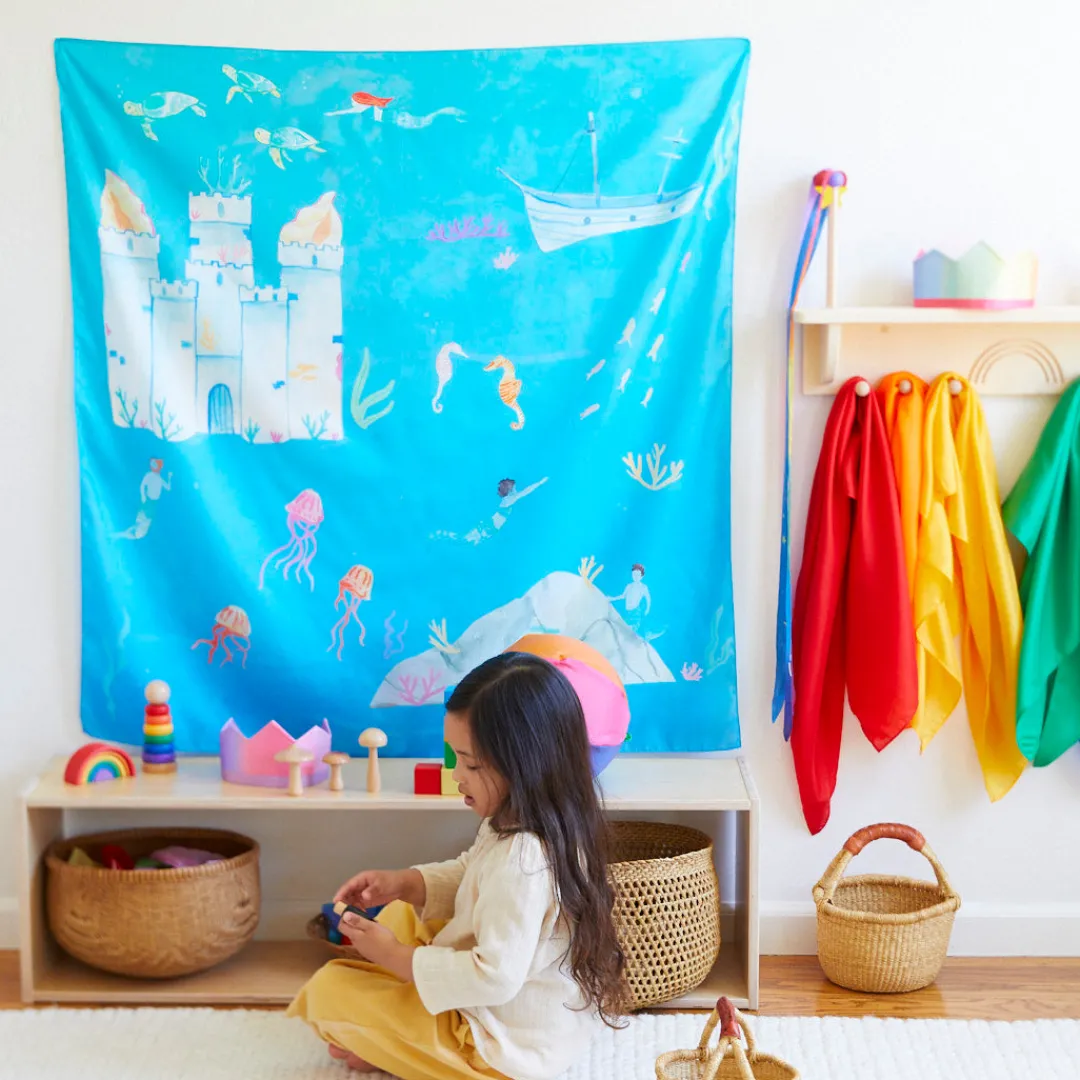 Featuring a hand-painted Large Playsilk, depicting a beautiful under the sea scene – perfect for your child’s small world, imaginative play.