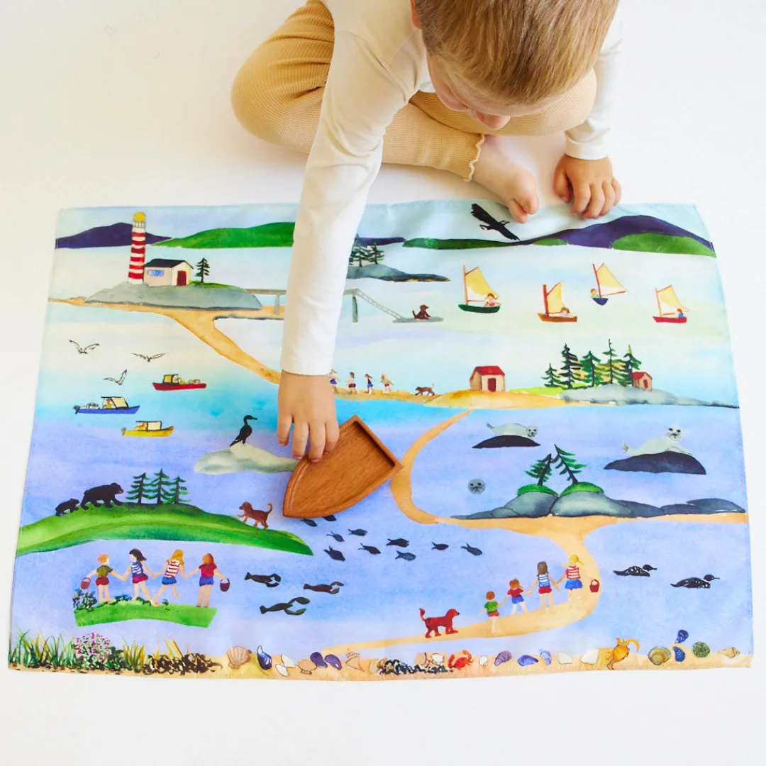This NEW special limited edition Summer in Maine Seek & Find Playsilk features scenes from Sarah’s childhood in Maine, brought to life with beautiful illustrations from her mother, artist @MarciaStremlau.