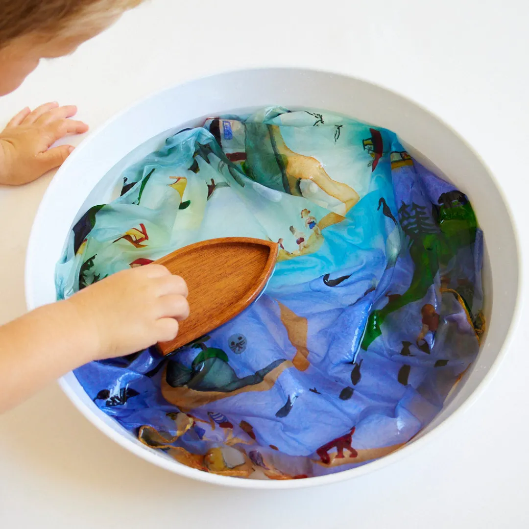 Seek & Find Playsilks are 21″ x 29″, made from heavyweight, 100% pure mulberry silk. Included with every Seek & Find Playsilk are one of a kind cards with suggestions for children to easily begin the seek and find fun!