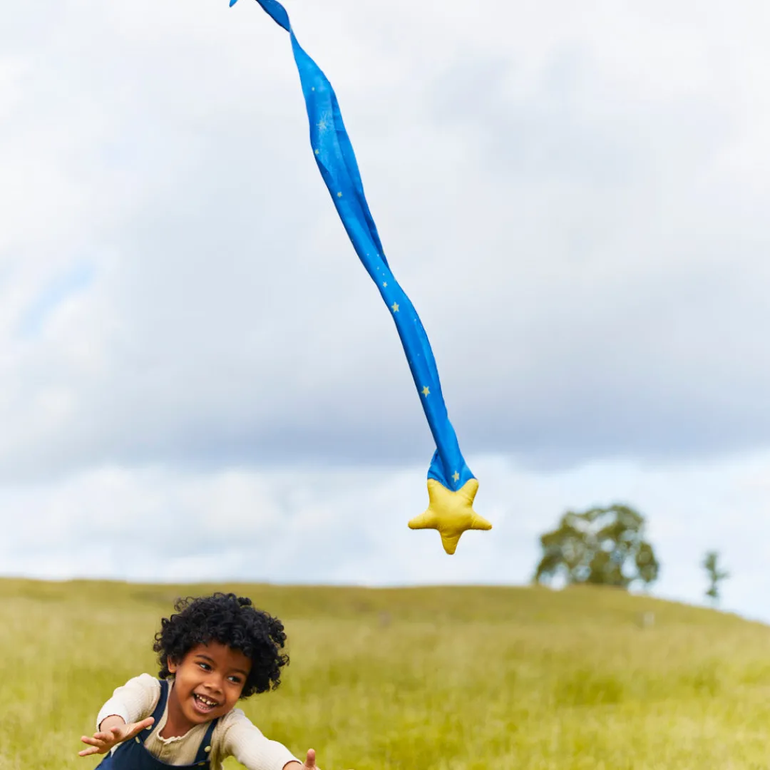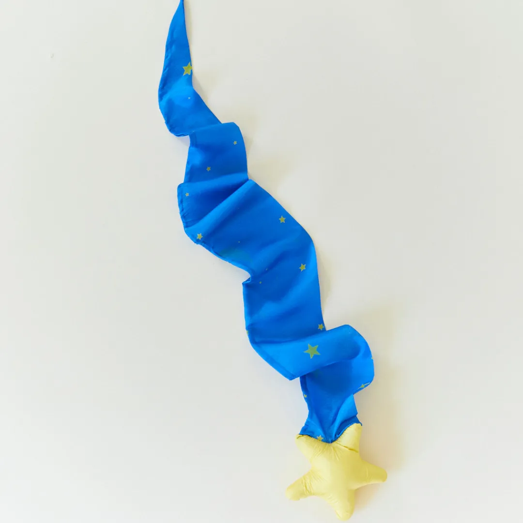 The Shooting Star Skytail is a star-shaped stuffed ball with a star silk tail.