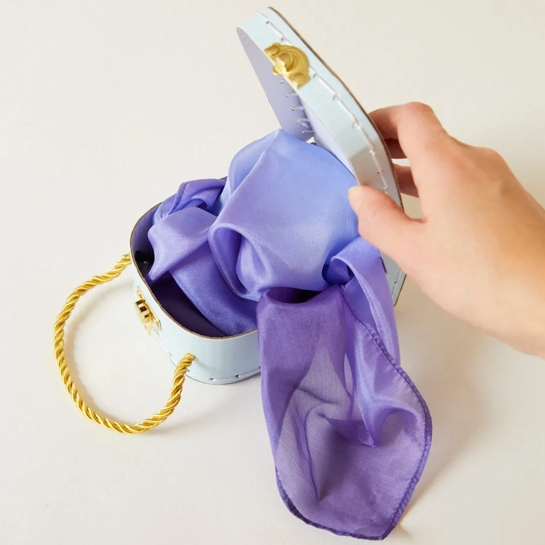 Perfect for bringing joy to any little one’s travel! Gather and store special treasures found on nature walks. Fits Mini Playsilks, Playsilks, wooden animals, and small dress-ups too!