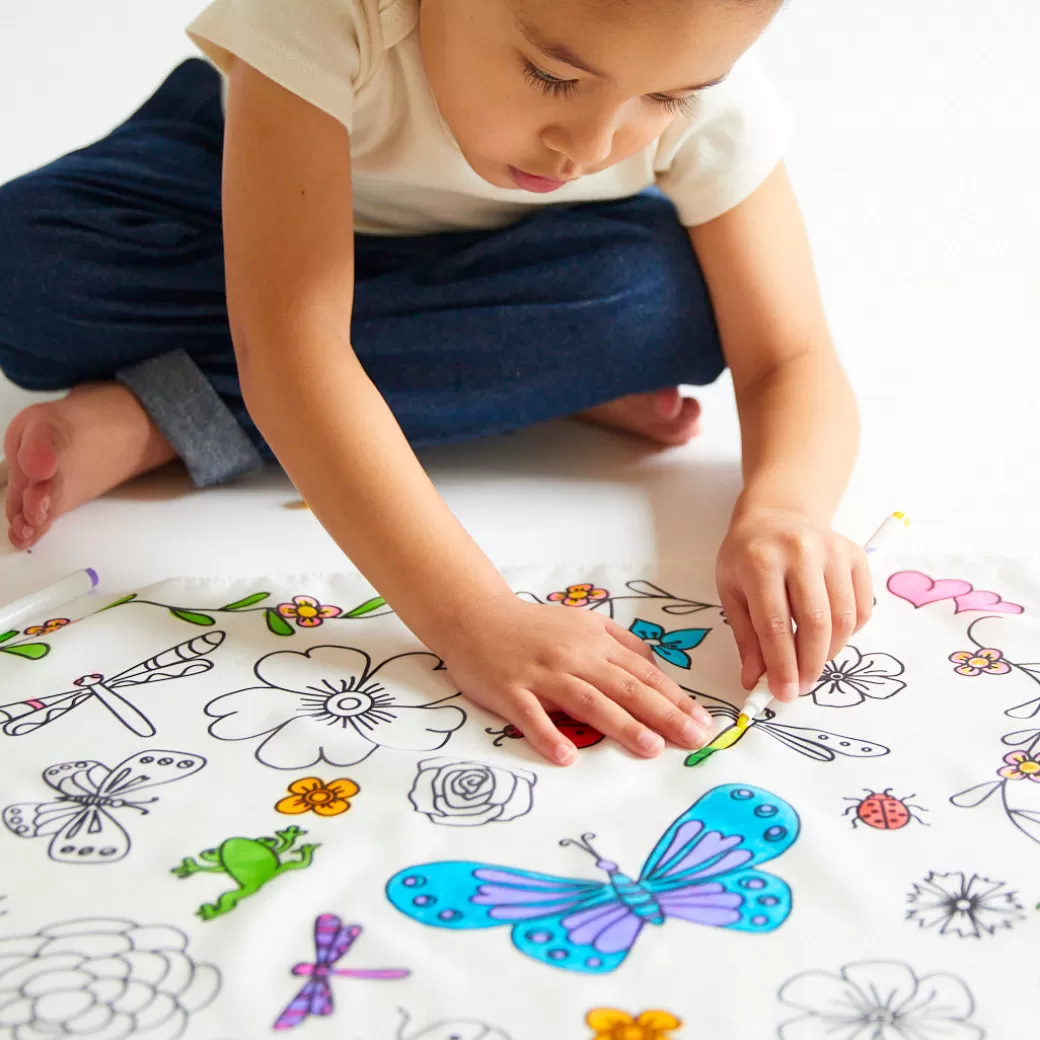 Perfect for any young artist – color with mostly washable markers or paint with watercolor – this Playsilk will become anything your child imagines!