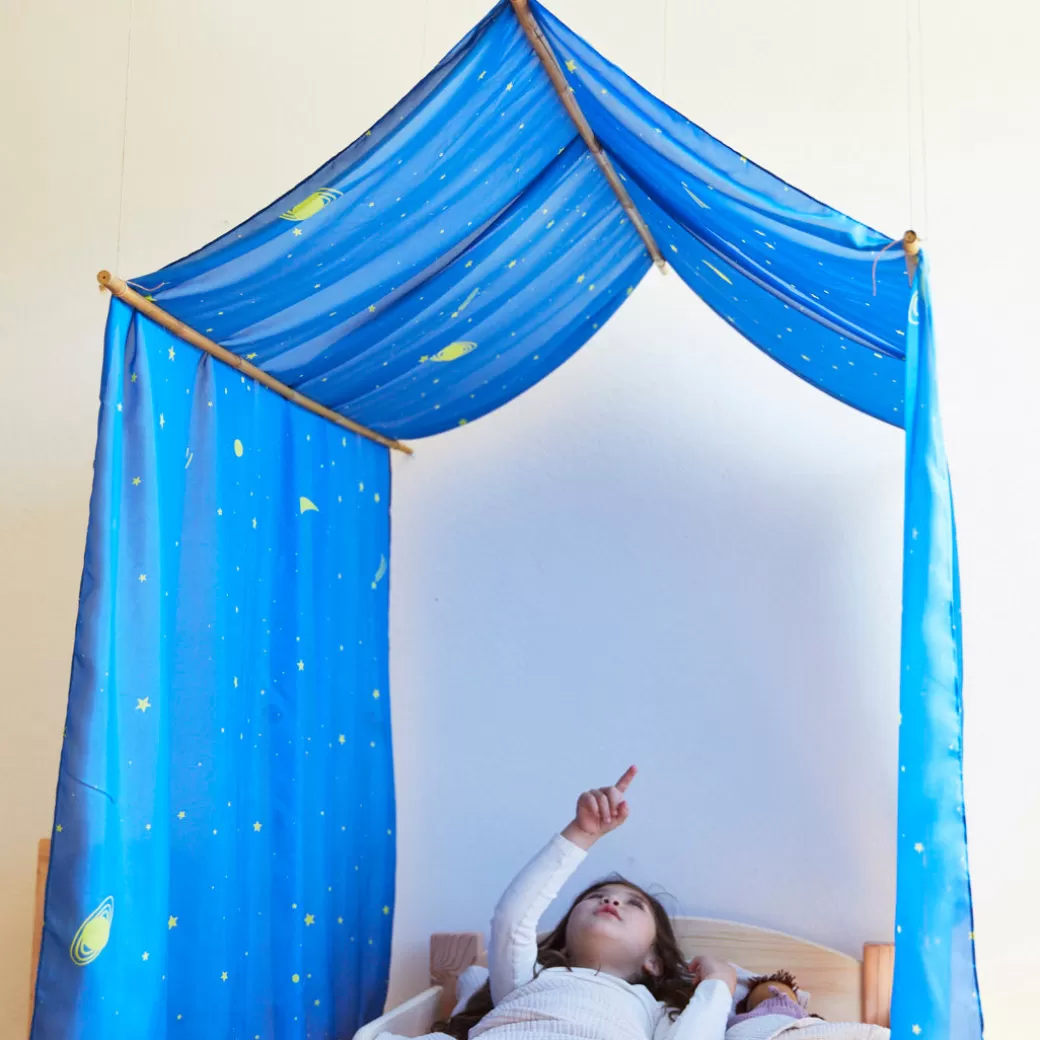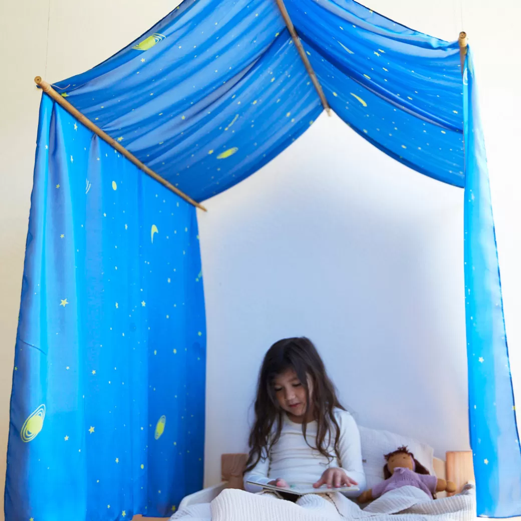 Double Star Playsilks are perfect for bed canopies, fort building, parachute play, star gazing, and so much more!