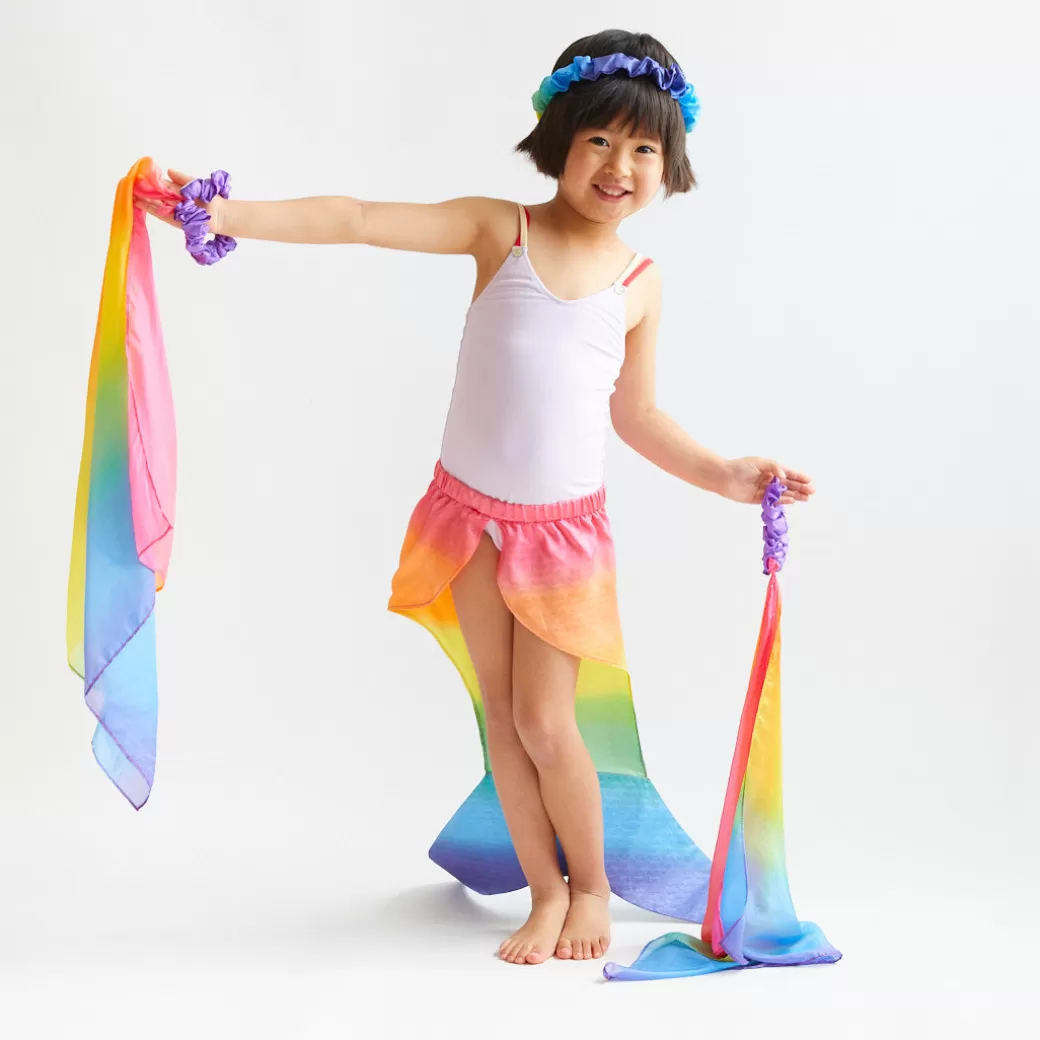 Hand-painted in our bestselling Rainbow colorway, our silk Mermaid Tail is beautiful and silky soft.
