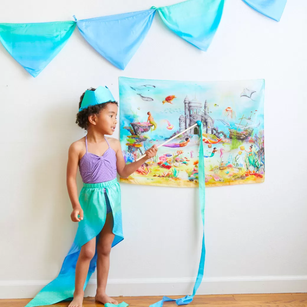Seek & Find Playsilks are made in collaboration with different artists. The Mermaid Seek & Find Playsilk features original artwork by Mhairi Hellbrandt.