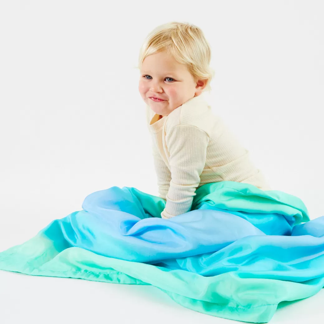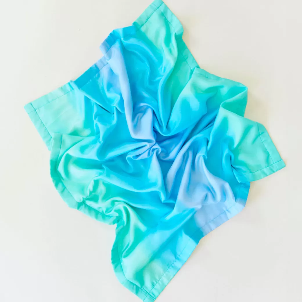 Sea Silk Baby Blankets measure 30 x 40-inches and are made from a layer of shimmering silk in our Sea colorway and a layer of yellow flannel. Lightweight, gentle, cozy, and designed to nourish your baby’s sense of touch. Perfect for keeping newborns up to toddlers comfortable in every season.